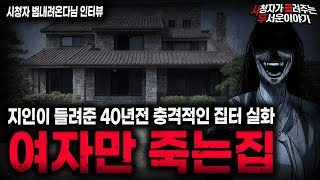 【무서운이야기 실화】"여자만 죽는 집" 40년전 가족들이 도망나온 소름끼치는 집터 괴담ㅣ범내려온다님 사연ㅣ돌비공포라디오ㅣ괴담ㅣ미스테리 인터뷰ㅣ시청자 사연ㅣ공포툰ㅣ오싹툰ㅣ공